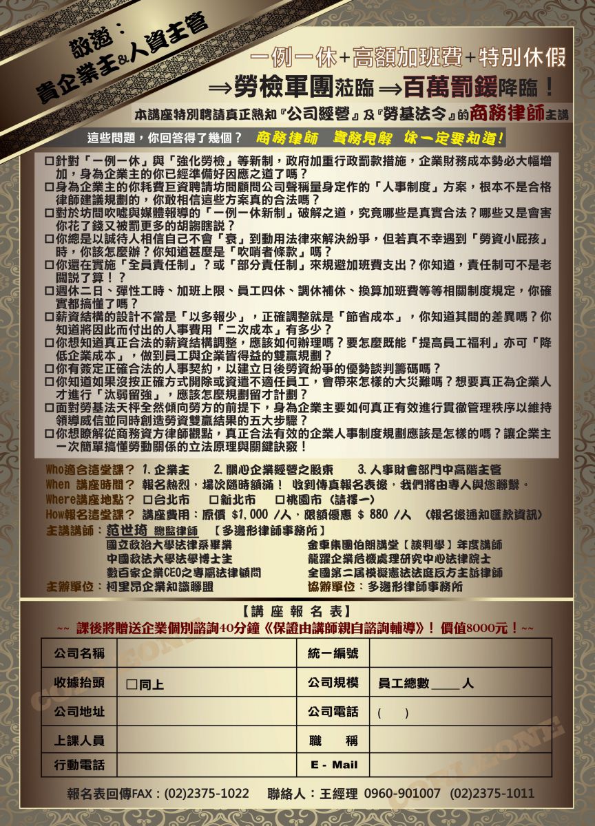 您目前的位置於: 法律講堂 > 勞基法