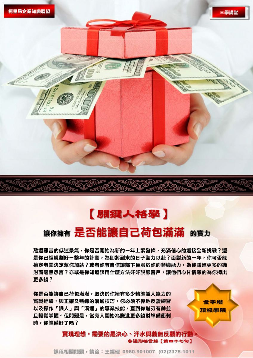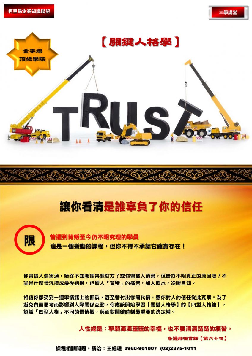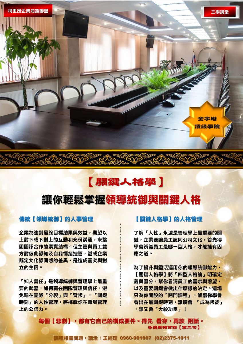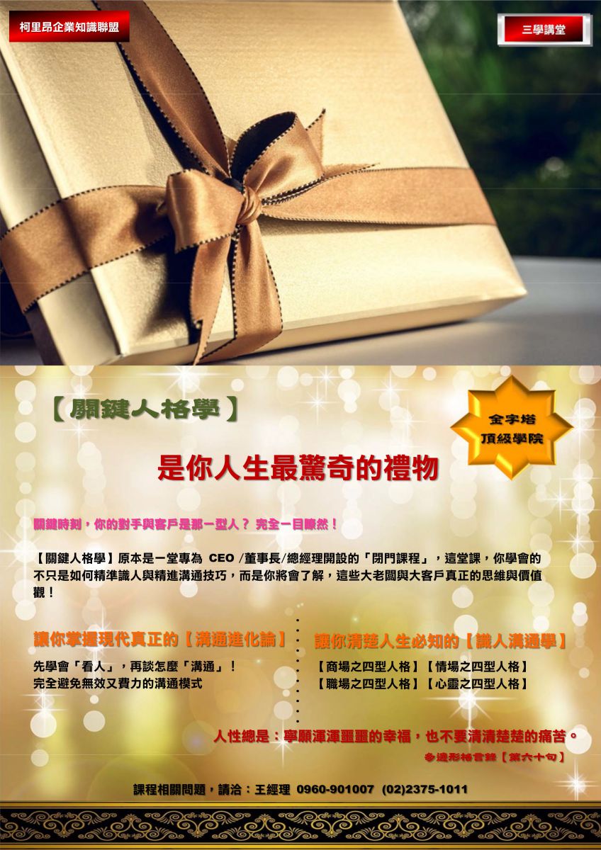 透過學習此課程,你可以提前預知,關鍵時刻,你的長官、部下、客戶甚至你的對手,會是怎樣的人?會作怎樣的事?
